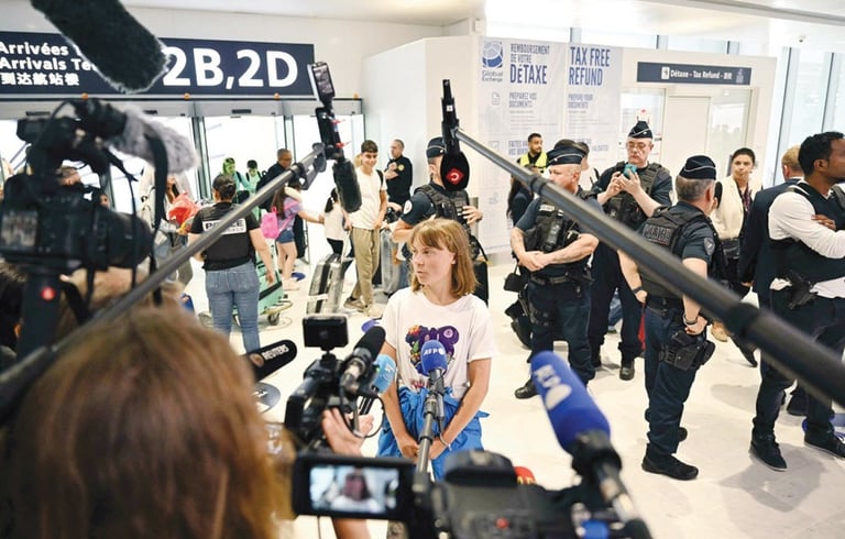 وقالت ثونبرج، في تصريح صحفي عقب وصولها إلى فرنسا، إنها رفضت التوقيع على وثيقة تزعم دخولها إلى إسرائيل بطريقة غير قانونية، مؤكدة: "كنا في المياه الدولية، ولم ننتهك أي قوانين، وتم اختطافنا رغماً عنا".