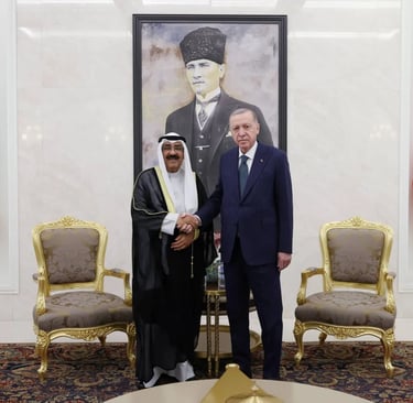 تلقى حضرة صاحب السمو أمير البلاد الشيخ مشعل الأحمد الجابر الصباح اتصالاً هاتفياً من الرئيس التركي رجب طيب أردوغان، حيث تم خلاله بحث التطورات المتسارعة في الشرق الأوسط، لاسيما الصراع بين إيران والكيان الإسرائيلي.