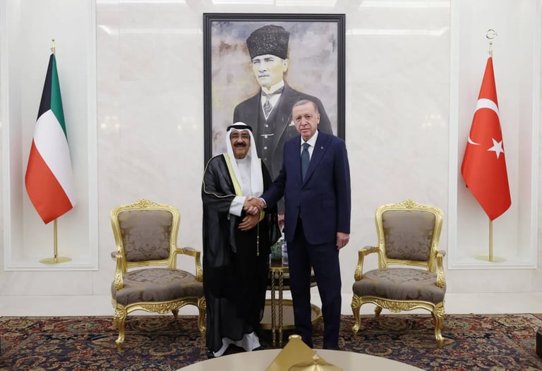 تلقى حضرة صاحب السمو أمير البلاد الشيخ مشعل الأحمد الجابر الصباح اتصالاً هاتفياً من الرئيس التركي رجب طيب أردوغان، حيث تم خلاله بحث التطورات المتسارعة في الشرق الأوسط،