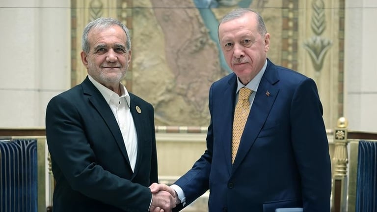 أعرب الرئيس التركي رجب طيب أردوغان عن استعداد بلاده للقيام بدور "تسهيل" فوري لإنهاء الاشتباك العسكري بين إسرائيل وإيران، داعيًا إلى استئناف المفاوضات النووية. جاء ذلك في اتصال هاتفي مع الرئيس الإيراني المنتخب مسعود بزشكيان، وفق بيان رسمي صادر عن الرئاسة التركية ونقلته وكالة "الأناضول".