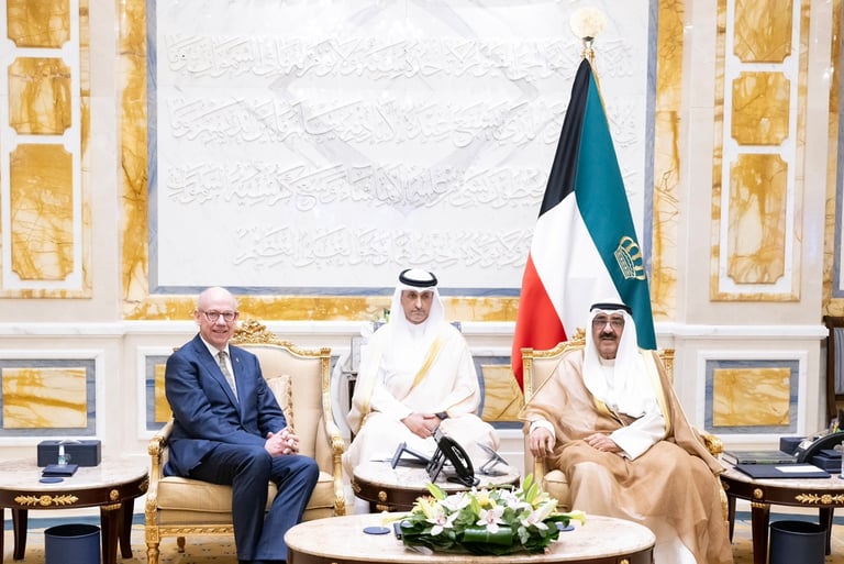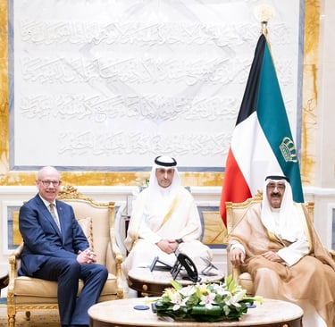 استقبل صاحب السمو أمير البلاد الشيخ مشعل الأحمد الجابر الصباح في قصر بيان صباح اليوم، مايكل جاري، نائب رئيس مجلس إدارة مؤسسة الملك في المملكة المتحدة الصديقة