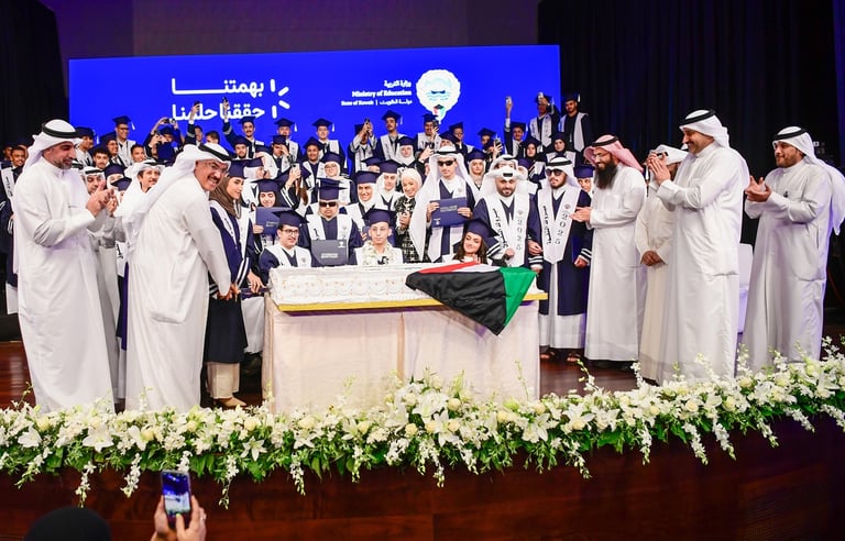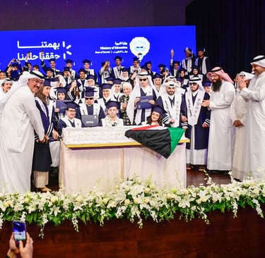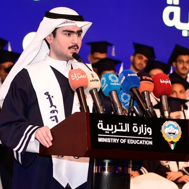 واختتم الطبطبائي كلمته بتوجيه رسالة إلى المتفوقين وأولياء أمورهم، مؤكدًا أن هذا الإنجاز تحقق بفضل الله ثم بفضل الدعم المتواصل من القيادة السياسية الرشيدة، ناقلاً تحيات وتهاني سمو أمير البلاد الشيخ مشعل الأحمد، وسمو ولي عهده الأمين الشيخ صباح الخالد، ورئيس مجلس الوزراء سمو الشيخ أحمد العبدالله، تقديراً لهذا الإنجاز الذي تحقق بجدارة وتفوق الطلبة.