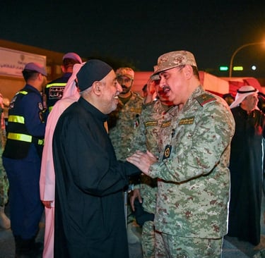تفقد وكيل الحرس الوطني، الفريق الركن مهندس هاشم عبدالرزاق الرفاعي، قوة واجب "سالم" المكلفة بتأمين النطاق الخارجي لمجالس العزاء خلال شهر محرم. ويأتي هذا التفقد في إطار التعاون المشترك مع رجال وزارة الداخلية لضمان الأمن والنظام. نقل الوكيل تحيات الشيخ مبارك حمود الجابر الصباح رئيس الحرس الوطني والشيخ فيصل نواف الأحمد الصباح نائب رئيس الحرس الوطني، وتقديرهما للدور الحيوي الذي تؤديه القوة في دعم إخوانهم بوزارة الداخلية.