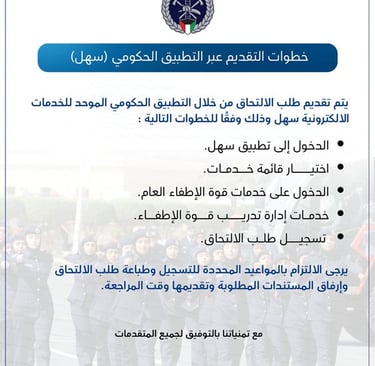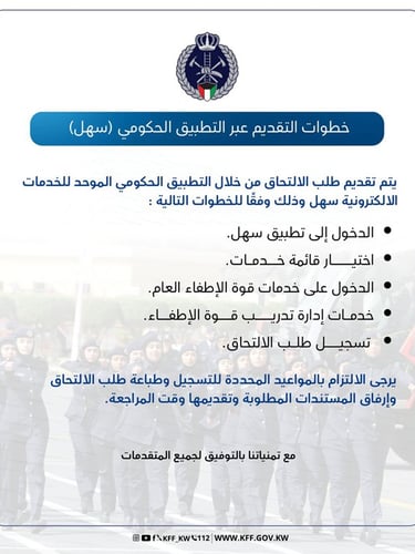 أعلنت قوة الإطفاء العام عن فتح باب التسجيل لاستقبال طلبات الراغبات بالالتحاق بدورة ضباط اختصاص من حملة الشهادة الجامعية. وسيتم التسجيل عبر تطبيق "سهل"، بدءاً من اليوم وحتى تاريخ 7 أغسطس 2025.
