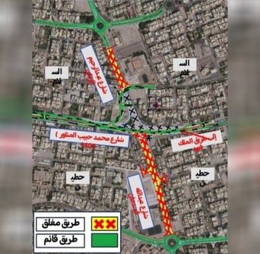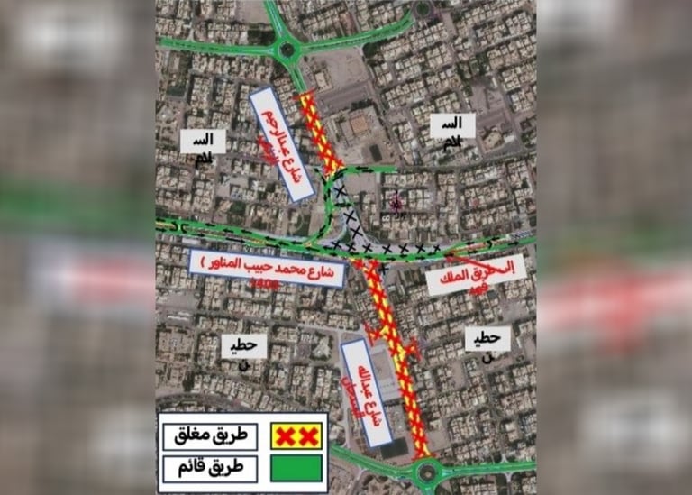 أعلنت الهيئة العامة للطرق والنقل البري عن إغلاق جزئي لطريقي "عبدالرحيم الزنكي" في منطقة السلام، و"عبدالله السدحان" في منطقة حطين. هذا الإغلاق سيبدأ فجر بعد غد السبت.
