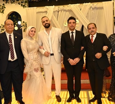 أخوال العريس: الأستاذ الدكتور حسام حسن (استشاري الأنف والأذن)، والأستاذ الدكتور أحمد حسن (استشاري الأمراض الصدرية).
