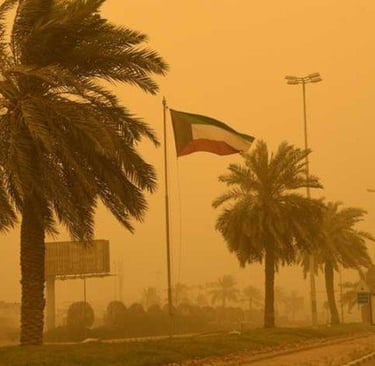 تشهد الكويت اليوم الأحد وغدًا الإثنين، رياحًا معتدلة إلى نشطة السرعة، مثيرة للغبار، وقد تتجاوز سرعتها 50 كيلومترًا في الساعة. يتوقع أن يؤدي ذلك إلى انخفاض الرؤية الأفقية إلى أقل من ألف متر في بعض المناطق، خاصة المكشوفة منها.