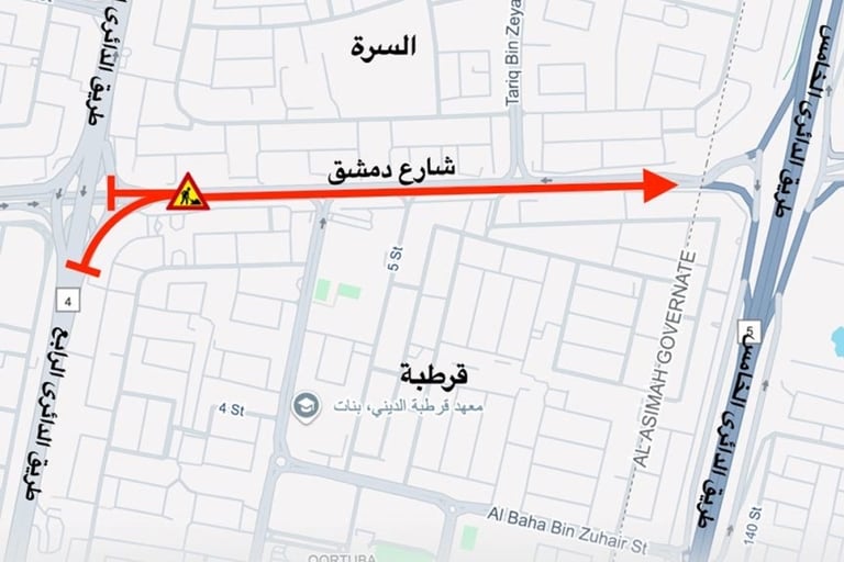 يشمل الإغلاق أيضاً الحارة السريعة والحارة الوسطى من شارع دمشق، ابتداءً من تقاطع طريق الدائري الرابع باتجاه طريق الشيخ زايد بن سلطان آل نهيان (الدائري الخامس). وسيكون هذا الإغلاق سارياً من يوم الأربعاء الموافق 6 أغسطس 2025 وحتى 20 أغسطس 2025.