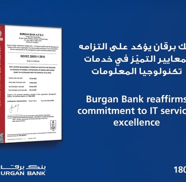 بنك برقان يجدد شهادة الآيزو لإدارة خدمات تكنولوجيا المعلومات