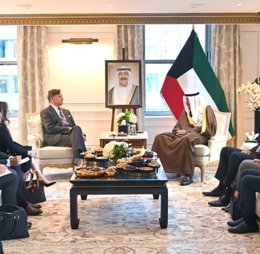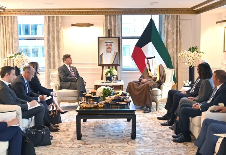 استقبل ممثل صاحب السمو أمير البلاد، سمو ولي العهد الشيخ صباح الخالد، في مقر إقامته بمدينة نيويورك، نائب وزير الخارجية الأمريكي كريستوفر لاندو، وعمدة مدينة ميامي فرانسيس سواريز.
