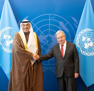 تهنئة وتقدير: نقل سموه تحيات صاحب السمو أمير البلاد، وهنأ الأمين العام بمناسبة الذكرى الـ80 لتأسيس الأمم المتحدة، مؤكدًا على أهمية إصلاح وتطوير آليات عمل المنظمة.