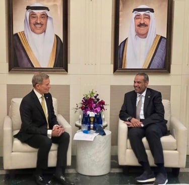 التقى وزير الخارجية الكويتي، عبدالله اليحيا، في نيويورك، وزير العلاقات الخارجية بجمهورية الدومينيكان، روبيرتو ألفاريز، على هامش أعمال الدورة الـ80 للجمعية العامة للأمم المتحدة.