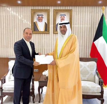 تسلم وزير الخارجية الكويتي، عبدالله اليحيا، اليوم الأربعاء، رسالة خطية من وزير خارجية الجمهورية الإسلامية الإيرانية، الدكتور سيد عباس عراقجي
