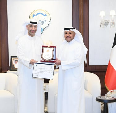 السيد منصور الديحاني، مدير الشؤون التعليمية بمنطقة الفروانية التعليمية، يرافقه السيد مشاري العدواني، لتهنئته بمنصبه الجديد وللتنسيق وتعزيز الشراكة مع القطاع التربوي.