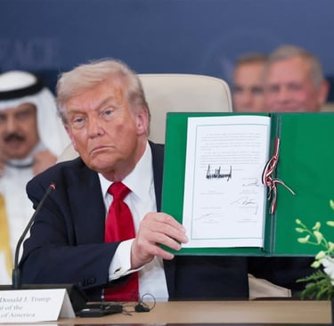نزع سلاح حماس وحزب الله: أكد ترامب أن المنطقة بأكملها وافقت على خطة لنزع سلاح حماس، وأن إدارته تدعم الحكومة اللبنانية في نزع سلاح حزب الله.