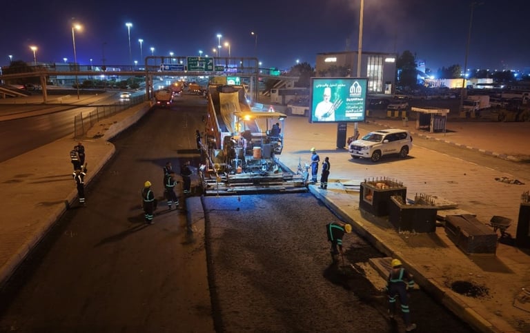 وزيرة الأشغال تؤكد: فرش أسفلت Type 1 على طريق الدائري الرابع مقابل الشويخ لضمان أعلى معايير الجودة والسلامة