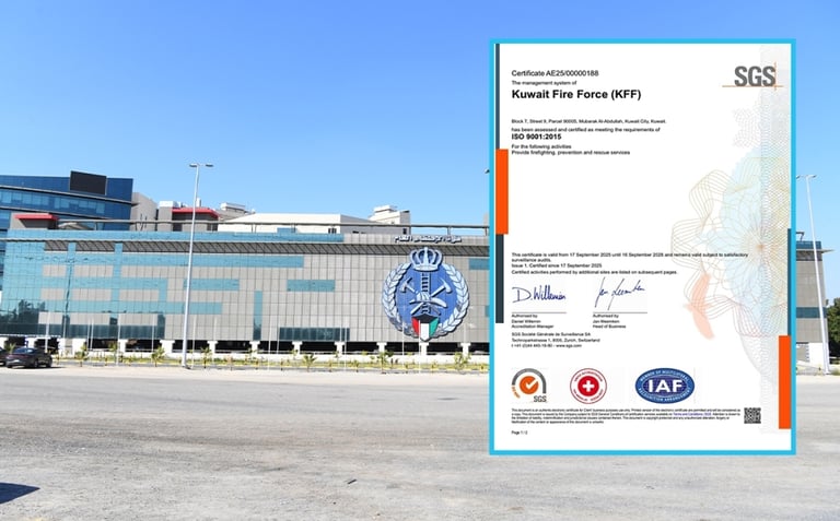 في خطوة تؤكد التزامها بتطوير الأداء المؤسسي، حصلت قوة الإطفاء العام على شهادة الآيزو العالمية (ISO 9001-2015) في كافة قطاعاتها، وذلك بعد استيفائها جميع متطلبات ومعايير الجودة المعتمدة دوليًا.