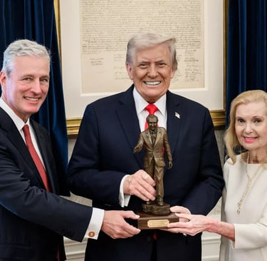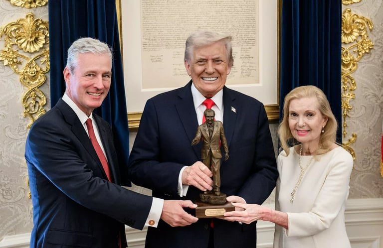وقدّم أعضاء عائلة نيكسون، ورئيس مجلس إدارة المؤسسة السفير روبرت كوبرين، الجائزة للرئيس ترامب في المكتب البيضاوي.