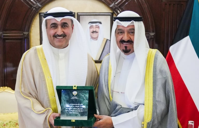 قام الرومي بتسليم سموه التقرير السنوي لديوان المحاسبة عن نتائج الفحص والمراجعة على تنفيذ ميزانيات الجهات المشمولة برقابته وحساباتها الختامية للسنة المالية (2024 - 2025).
