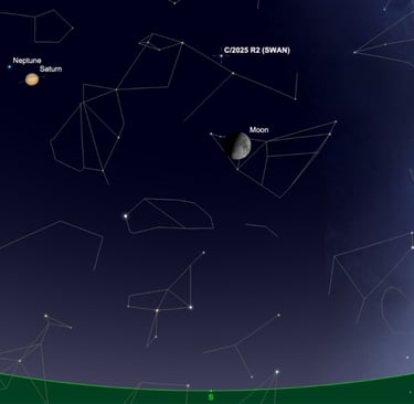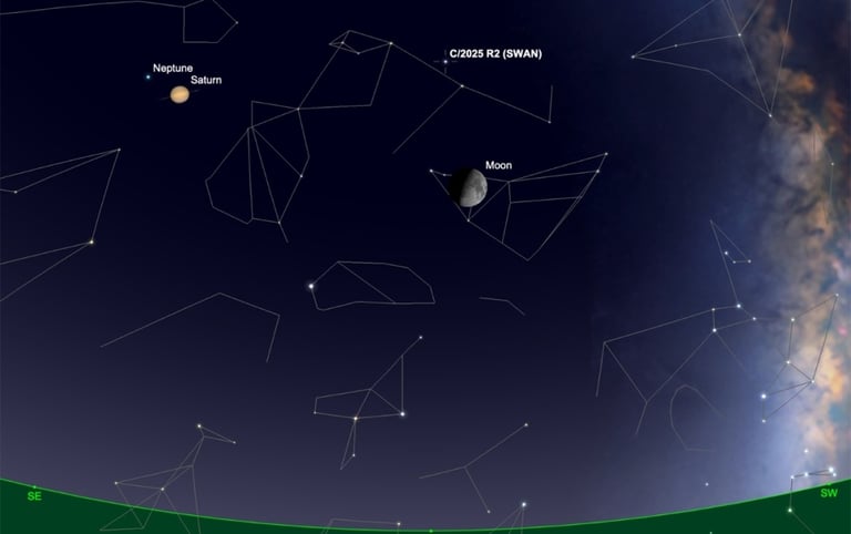 المذنب الملقب (C/2025 R2 - Swan) اكتشفه الفلكي فلاديمير بيزوجلي في $11$ سبتمبر الماضي. ويصنف ضمن المذنبات طويلة الدورة، إذ تبلغ دورته حوالي $654$ عامًا تقريبًا.