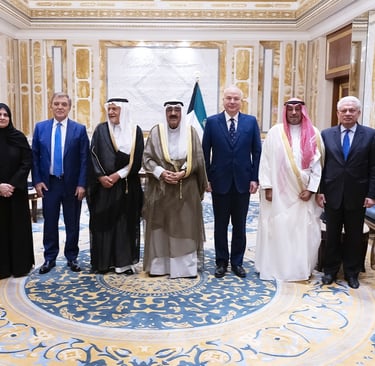 استقبل حضرة صاحب السمو أمير البلاد الشيخ مشعل الأحمد الجابر الصباح صباح اليوم في قصر بيان، رئيس مجلس أمناء مركز أكسفورد للدراسات الإسلامية صاحب السمو الملكي الأمير تركي الفيصل بن عبدالعزيز آل سعود والوفد المرافق له.