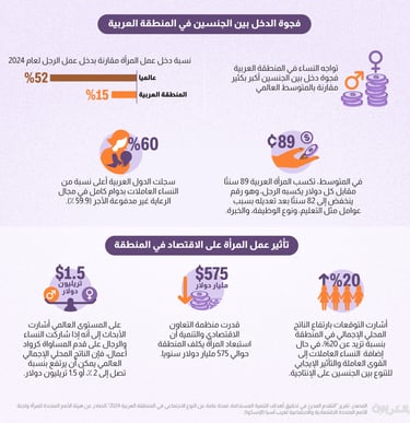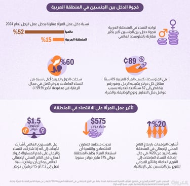 لا تتجاوز حصة المرأة من دخل العمل في المنطقة 14.5%، وهي النسبة الأدنى عالميًا، وأقل بكثير من المتوسط العالمي البالغ 51.8%.