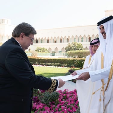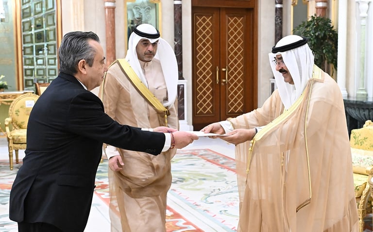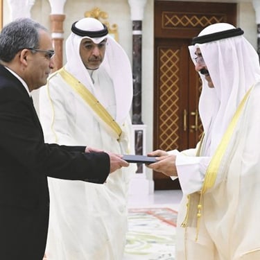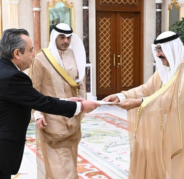 شهد قصر بيان صباح اليوم مراسم تسلم صاحب السمو أمير البلاد، الشيخ مشعل الأحمد الجابر الصباح، أوراق اعتماد خمسة سفراء جدد يمثلون دولهم لدى دولة الكويت. فقد تسلم سموه أوراق اعتماد كل من السفير د. ظفر إقبال عن جمهورية باكستان الإسلامية، والسفير أندرياس بانايوتو عن جمهورية قبرص، والسفير خوان كارلوس ستابن بويلات عن جمهورية السلفادور، والسفير أرسين ألكسندر أراكيليان عن جمهورية أرمينيا، والسفير لاكشيثا براديب راتناياكي عن جمهورية سريلانكا الديمقراطية الشعبية.