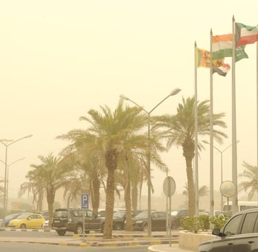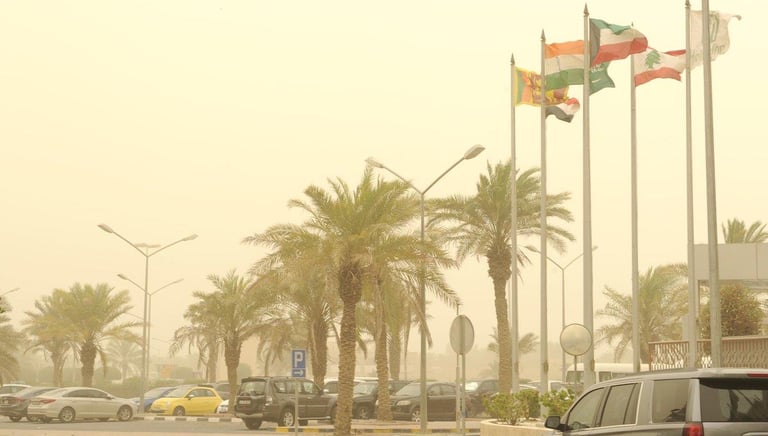 القيادة بحذر في المناطق المكشوفة بسبب الغبار.