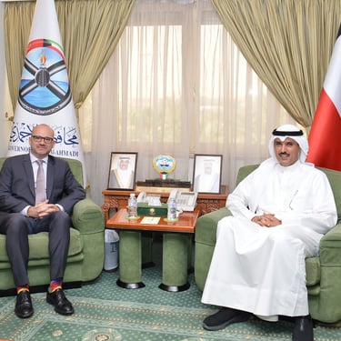 استقبل معالي محافظ الأحمدي الشيخ حمود جابر الأحمد الصباح، في ديوان عام المحافظة، الأستاذ يوسف محمد الميل، معلم مدرسة أبو أيوب الأنصاري المتوسطة بنين في حولي، يرافقه عدد من الطلاب. وقد اطلع المحافظ على مبادرة "طاقة مستدامة لمستقبل أجمل" التي تنفذها المدرسة بالتعاون مع جهات حكومية، بهدف ترسيخ ثقافة ترشيد استهلاك الكهرباء والماء بين الطلاب وأولياء الأمور والهيئة التعليمية.