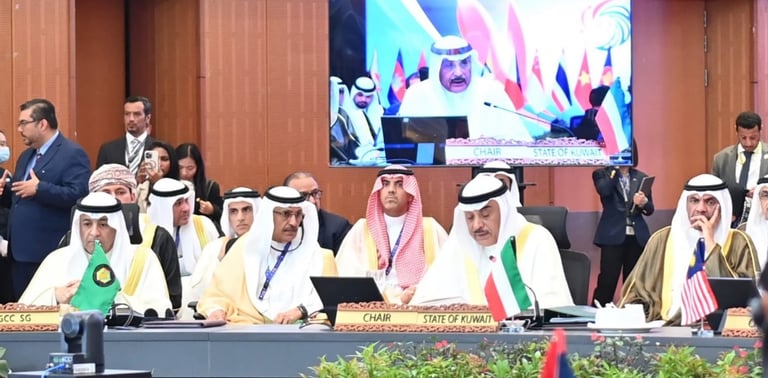 أكد ممثل سمو أمير البلاد، سمو ولي العهد الشيخ مشعل الأحمد الجابر الصباح، تطلع دول مجلس التعاون الخليجي إلى مشاركة دول رابطة دول جنوب شرق آسيا (آسيان) في معرض «إكسبو 2030» الذي ستستضيفه العاصمة السعودية الرياض. جاء ذلك في كلمة سموه التي ألقاها اليوم، والتي شدد فيها على أهمية هذه الفعالية العالمية كفرصة استراتيجية لإطلاق نموذج جديد من الشراكات المستدامة والتقنيات المستقبلية، والانفتاح الاقتصادي والثقافي الذي يعزز التنمية والتعاون الدولي.