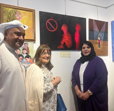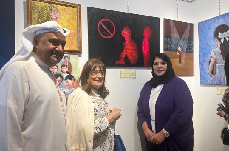 من جانبها، أبدت رئيسة مجلس إدارة الجمعية الوطنية لحماية الطفل د. سهام الفريح إعجابها بالأعمال المعروضة، معتبرةً المعرض خطوة مهمة لتسليط الضوء على قضايا الأطفال ومشاكلهم. وأكدت الفريح ضرورة تحويل هذه الأعمال الفنية إلى مواد إعلامية تُبث عبر وسائل التواصل الاجتماعي لنشر الوعي بين الأسر والمجتمع.