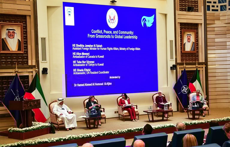 من جهتها، استعرضت غادة الطاهر، ممثلة الأمين العام للأمم المتحدة والمنسق المقيم لدى الكويت، أرقامًا عالمية تؤكد الحاجة لمشاركة النساء، مشيرة إلى أن النساء يمثلن 10% فقط من قوات حفظ السلام الأممية، و9% من القوات العسكرية، و21% في الشرطة، فيما لا تتجاوز نسبة النساء في المناصب العليا 3%. وأضافت أن مشاركة النساء تزيد من فرص نجاح اتفاقيات السلام بنسبة 20% خلال عامين، و35% خلال 15 عامًا، ما يعكس أهمية دور المرأة في تحقيق سلام مستدام وشامل.