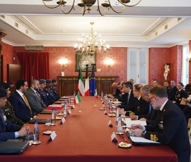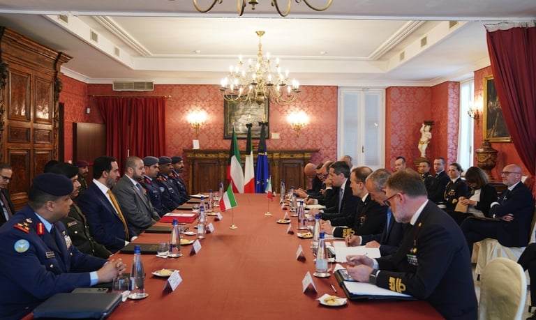 وكيل وزارة الدفاع الشيخ د. عبدالله مشعل الصباح يقود وفدًا كويتيًا إلى إيطاليا لتعزيز التعاون الدفاعي والسيبراني مع إيطاليا. تم خلال الزيارة عقد اجتماعات مع المسؤولين الإيطاليين وزيارة شركات متخصصة في الصناعات الدفاعية.