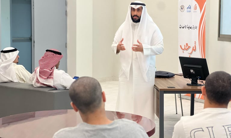 في إطار جهودها المتواصلة لرعاية وتأهيل فئة الأحداث، نظمت إدارة رعاية الأحداث بالتعاون مع مركز تعزيز الوسطية التابع لوزارة الأوقاف والشؤون الإسلامية لقاءً توجيهياً إيمانياً واجتماعياً وتربوياً مع نزلاء دار الملاحظة، وذلك ضمن حملة "خلك واعي". ألقى المحاضرة الدكتور عبدالله عجيل العازمي تحت عنوان "حسن الظن بالله"، بهدف غرس قيم الثقة بالله وتعزيز الإيجابية في نفوس النزلاء، تمهيدًا لدمجهم بالمجتمع وفتح صفحة جديدة مليئة بالأمل والنمو.